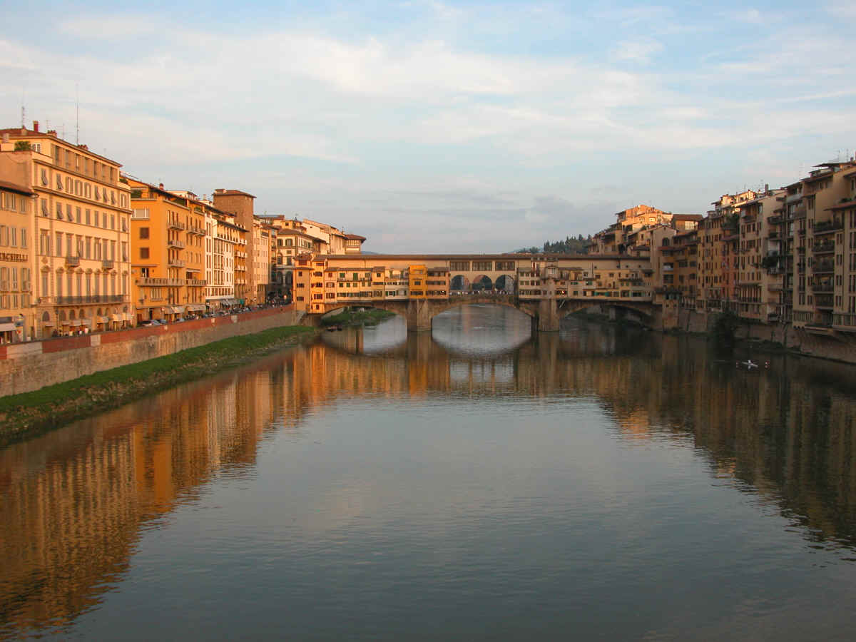 la façade occidentale du Ponte Vecchio (Neri di Fioravante 1345) au soleil couchant