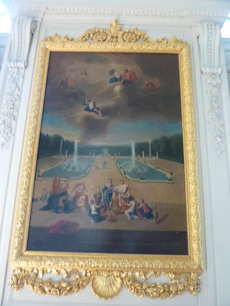 tableau des Parterres d'Eau - vue des Parterres d'Eau et des Cabinets des Animaux avec des prêtresses préparant un sacrifice à Vénus (cliquez sur la photo pour agrandir) Galerie des Cotelle du Grand Trianon le 19 février 2015