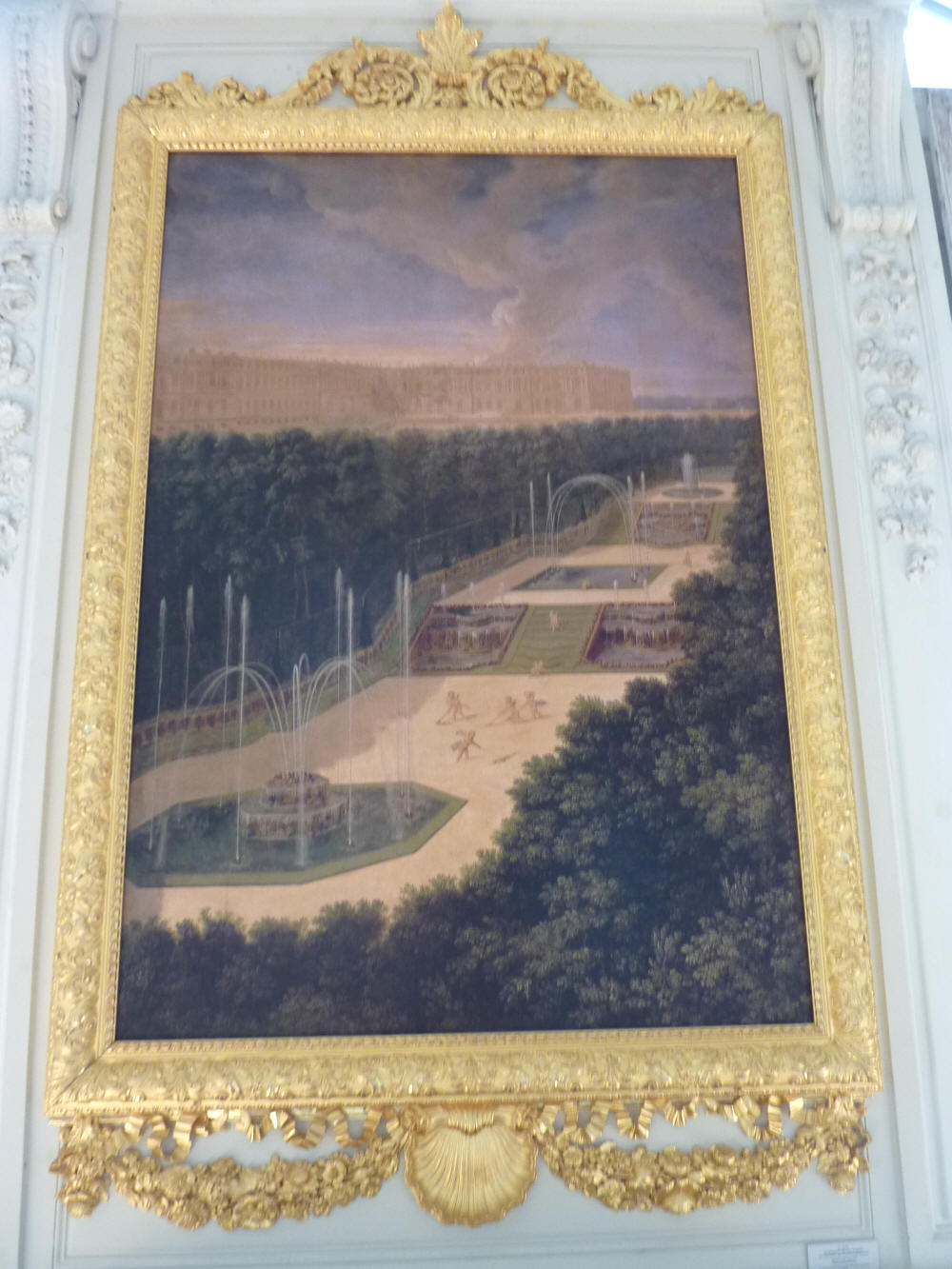 tableau du Bosquet des Trois Fontaines - vue perspective des Trois Fontaines avec des amours qui ratissent et qui arrosent (cliquez sur la photo pour agrandir) Galerie des Cotelle du Grand Trianon le 1er octobre 2015