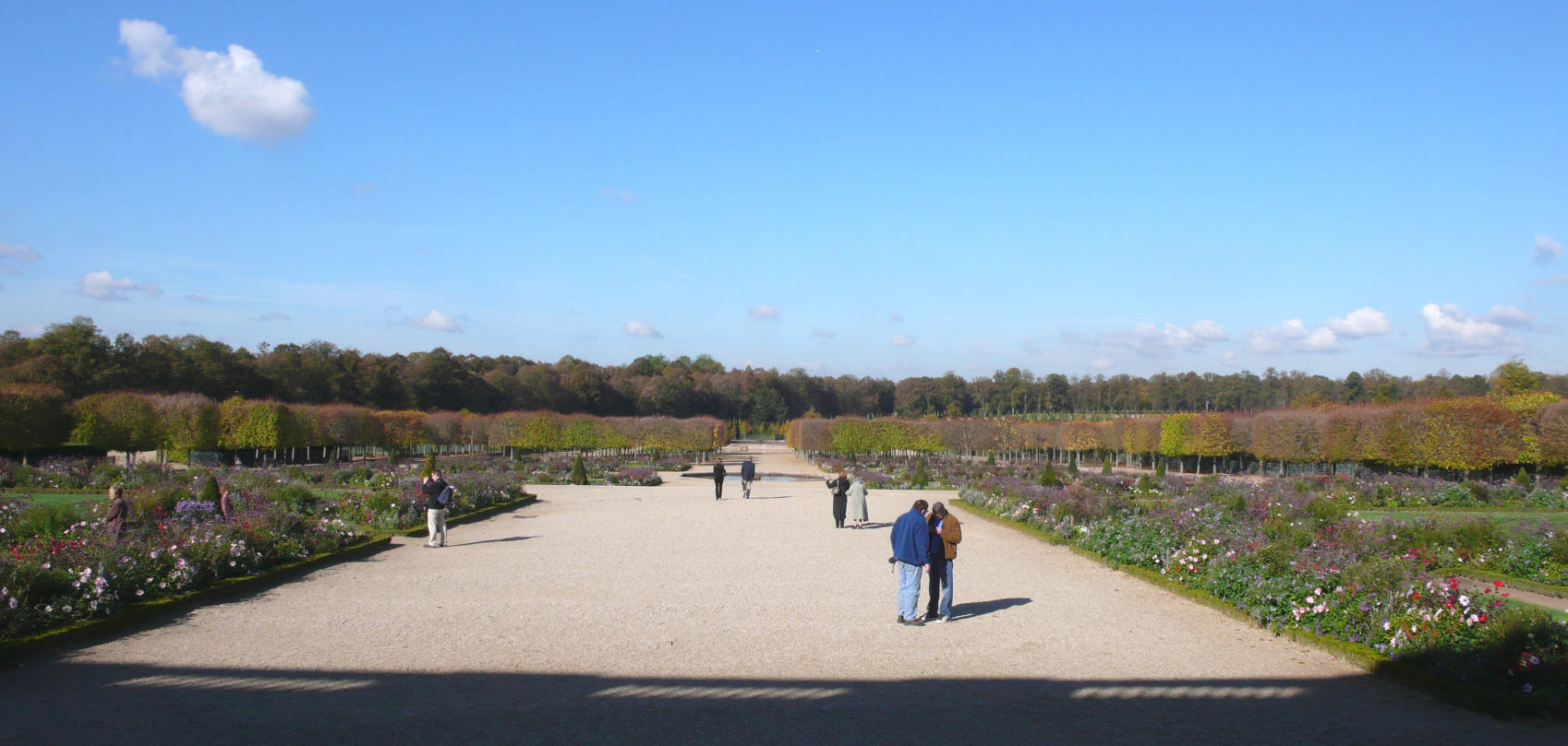 le Jardin Haut , puis le Parterre Bas et le Grand Quinconce et au loin le Bassin du Plat Fond le 18 octobre 2007 (maj: 23/12/2015 )